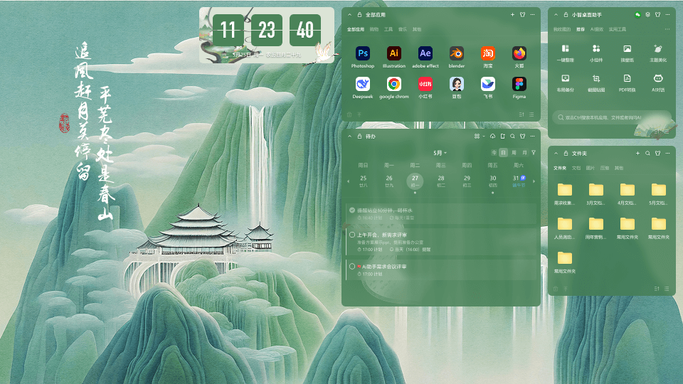 • 桌面組件自由搭配,重要事項一目了然